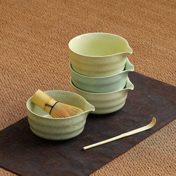 Japanse Matcha-Set Ceremoniecollectie Met Bamboe-Garde, Schep, Steengoedkom, Gardehouder